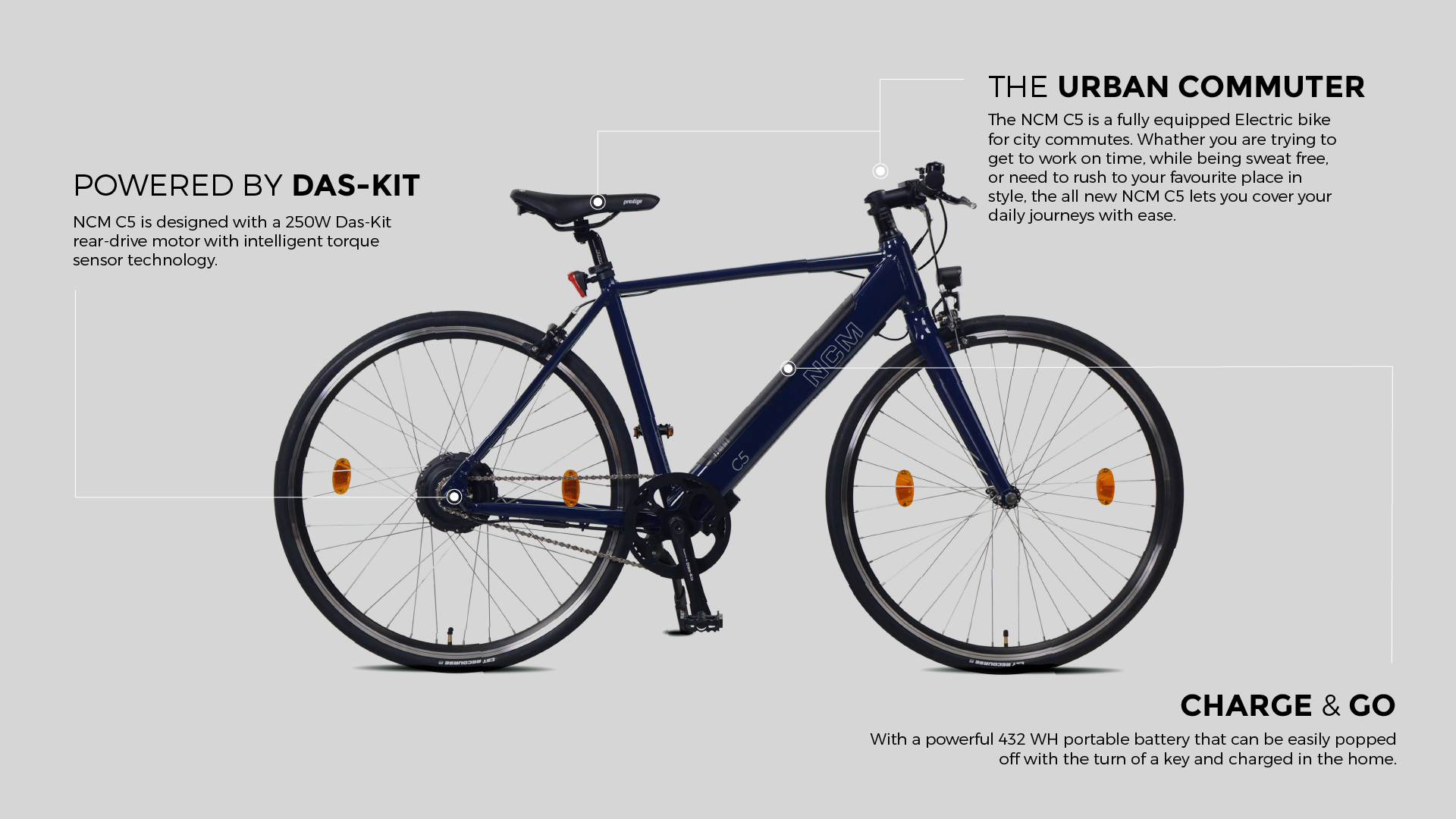 Built for those who want to electrify their commute and experience a more convenient way to get around, the NCM C5 e-city bike makes your daily rides around town smoother, simpler, and more fun than ever, fitted with a torque sensor for a seamless pedal feel and superior range.
