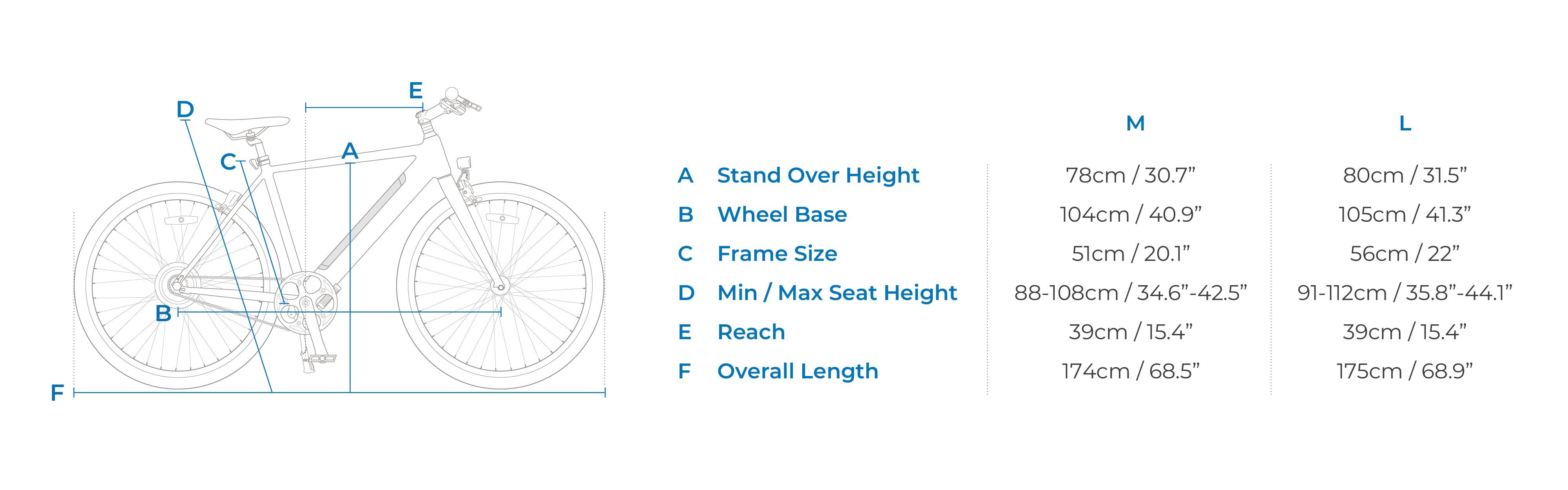 Frame: Alu. 6061, M: 20.1 inches, L: 22 inches