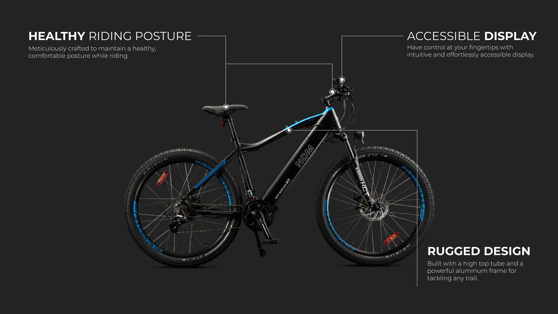 An entry-level e-mountain bike that doesn’t compromise on high-quality components, the NCM M3 is built to maintain its cool no matter what mountain trail it faces, balancing range and performance with accessibility and ease of use.