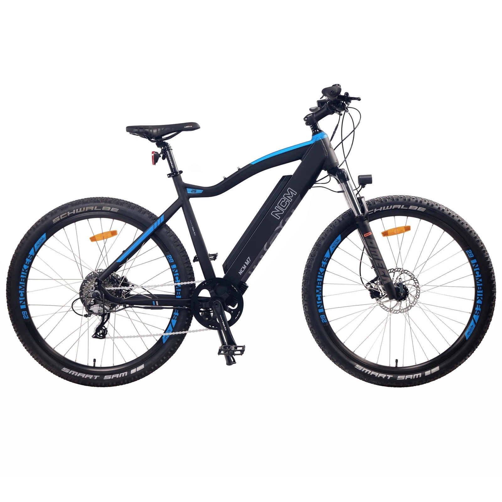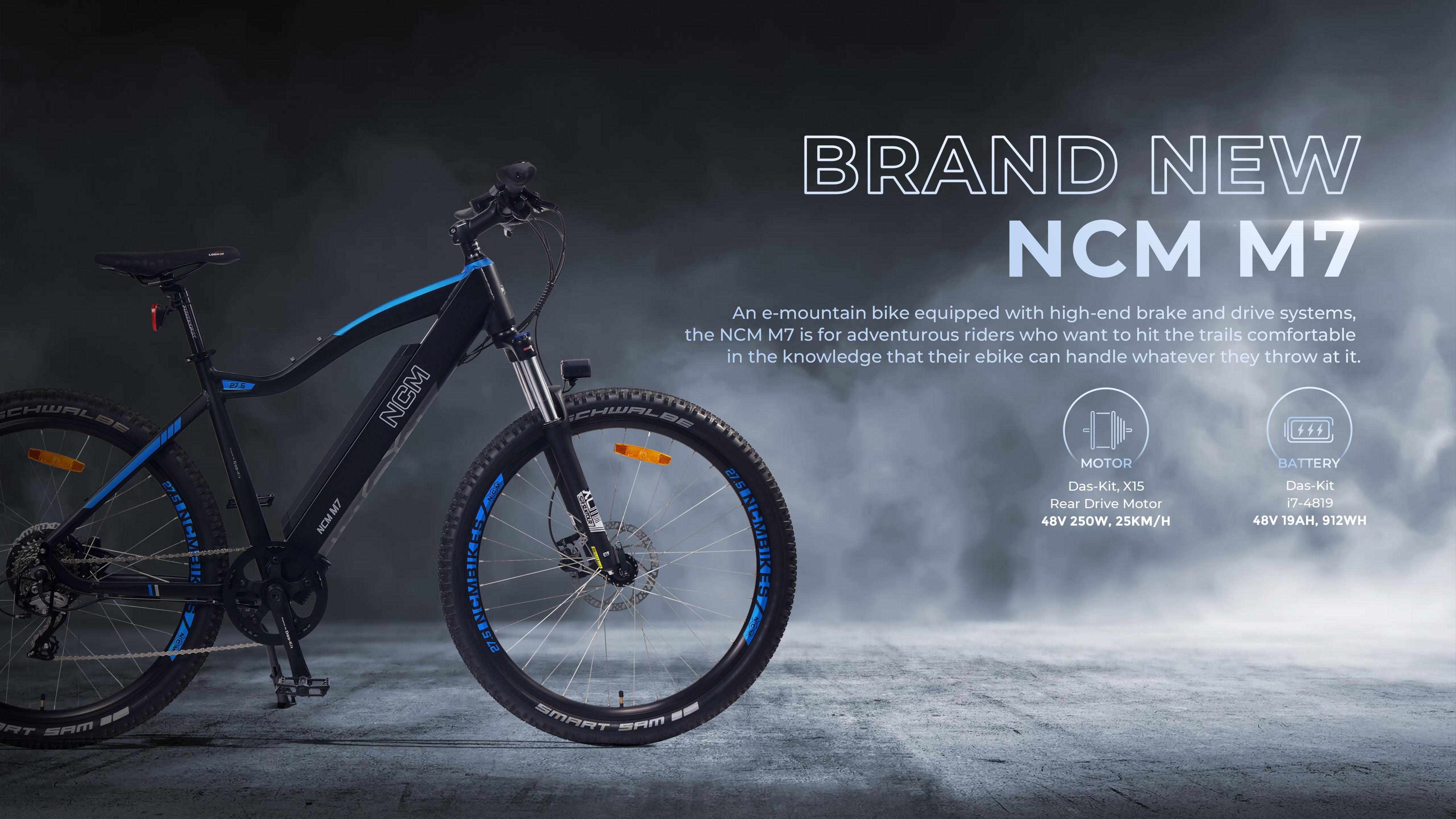 An e-mountain bike equipped with high-end brake and drive systems, the NCM M7 is for adventurous riders who want to hit the trails comfortable in the knowledge that their e-bike can handle whatever they throw at it.