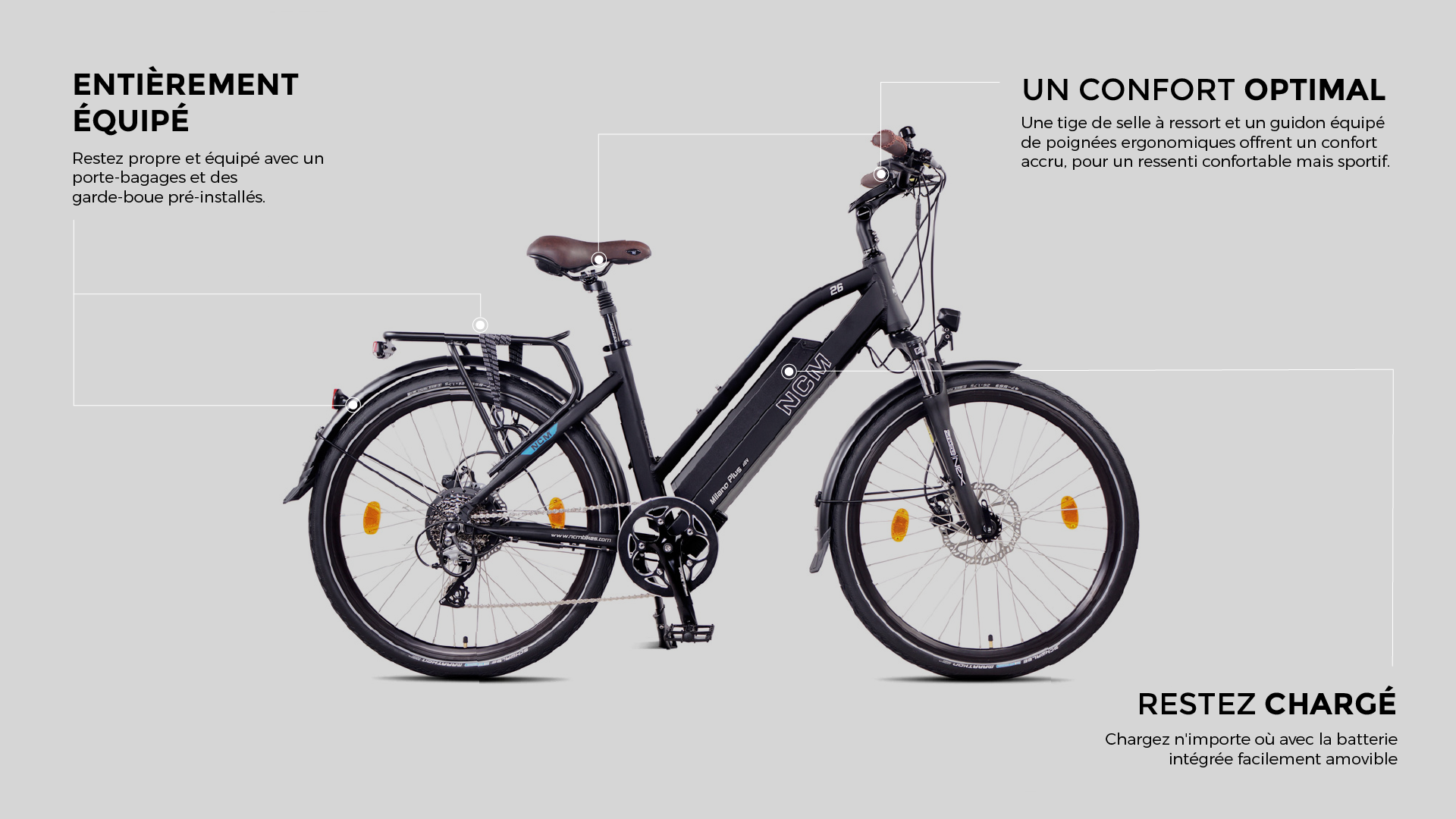 Balancing accessibility with superior specifications, the NCM Milano Plus is a step-through e-trekking bike for riders that are eager to tackle longer routes alongside their daily rides and want an e-bike with the range and the integrity to help them do it.